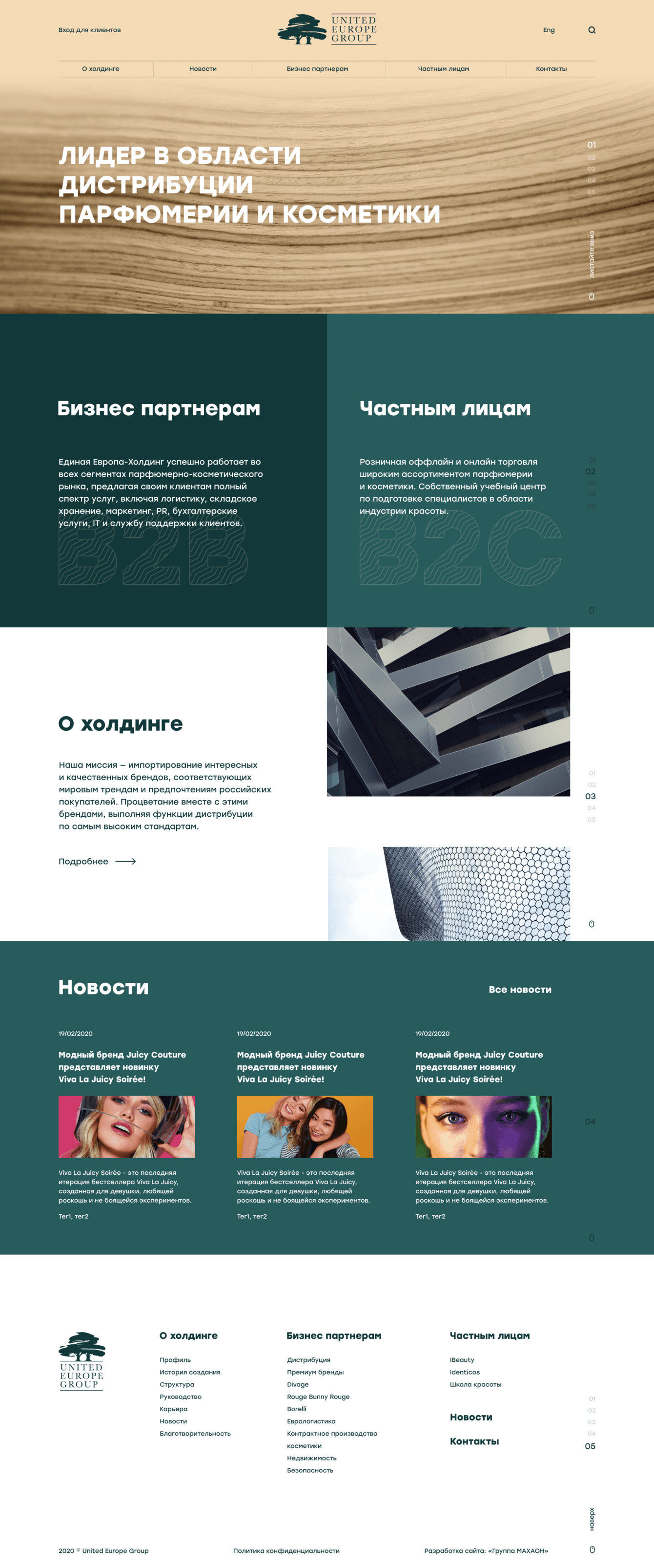 2. Сайт информирует об организационной и функциональной структуре холдинга, продуктовых направлениях, портфеле брендов и актуальных предложениях для текущих и потенциальных B2B партнеров и B2C клиентов холдинга. Эта информация должна помочь потенциальным партнёрам быстрее принимать решение о сотрудничестве.