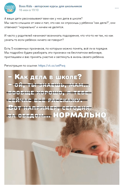 - Мы пишем цепляющие тексты для родителей, пример поста: