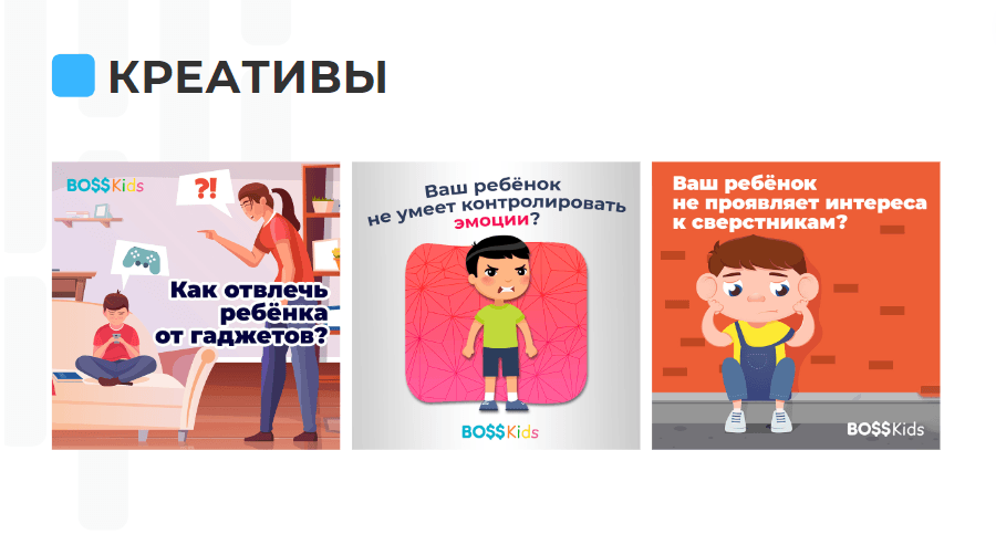 Наш клиент — онлайн школа BOSS Kids. Занимаются курсами по эмоциональному интеллекту и финансовой грамотности для детей и родителей.