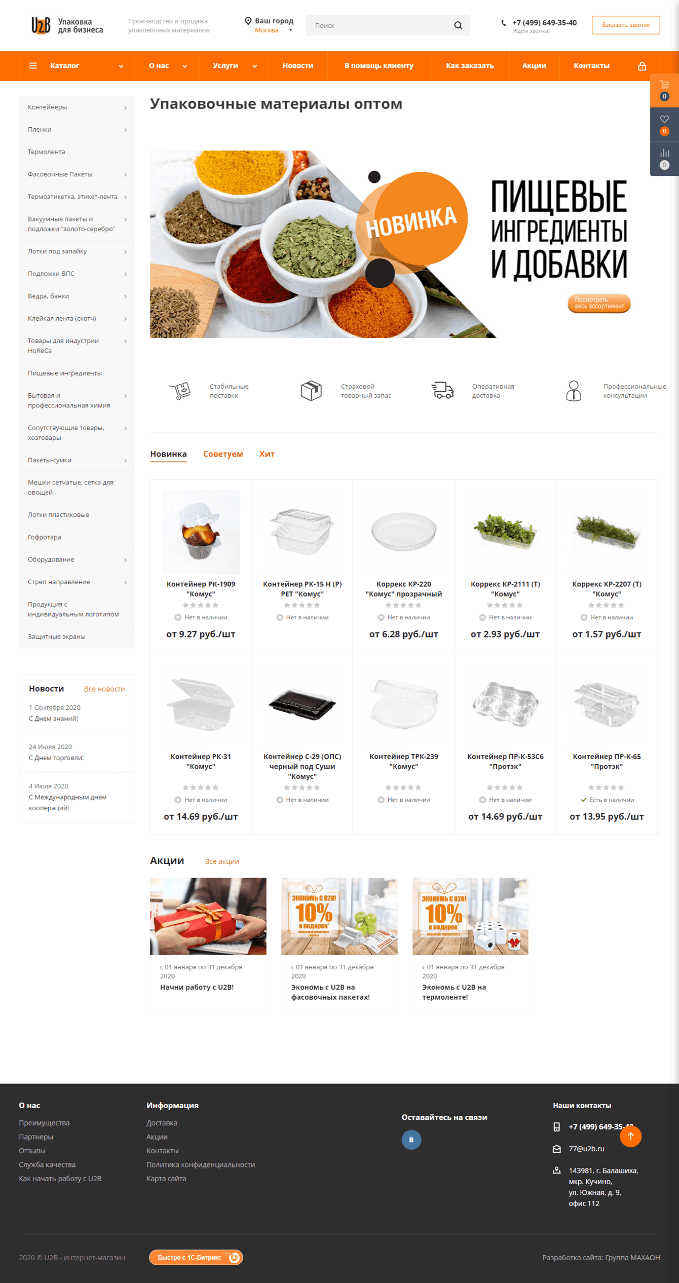 Нашей задачей стояло создать полнофункциональный современный интернет-магазин U2B на рынке упаковочных материалов.