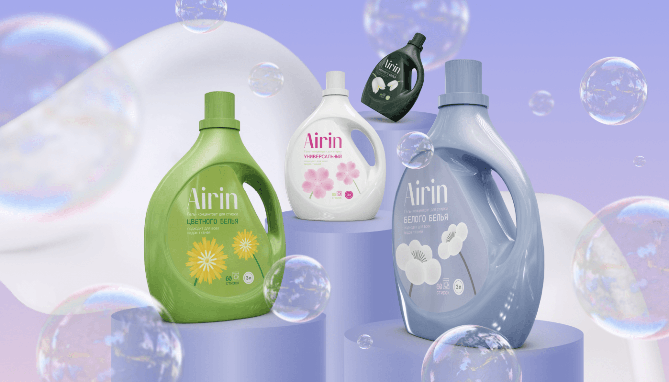 Airin — гель для деликатной стирки, разработанный с акцентом на мягкий уход за тканями, включая чувствительные типы тканей. Задача продукта — сохранять яркость и свежесть одежды, обеспечивая бережную очистку.