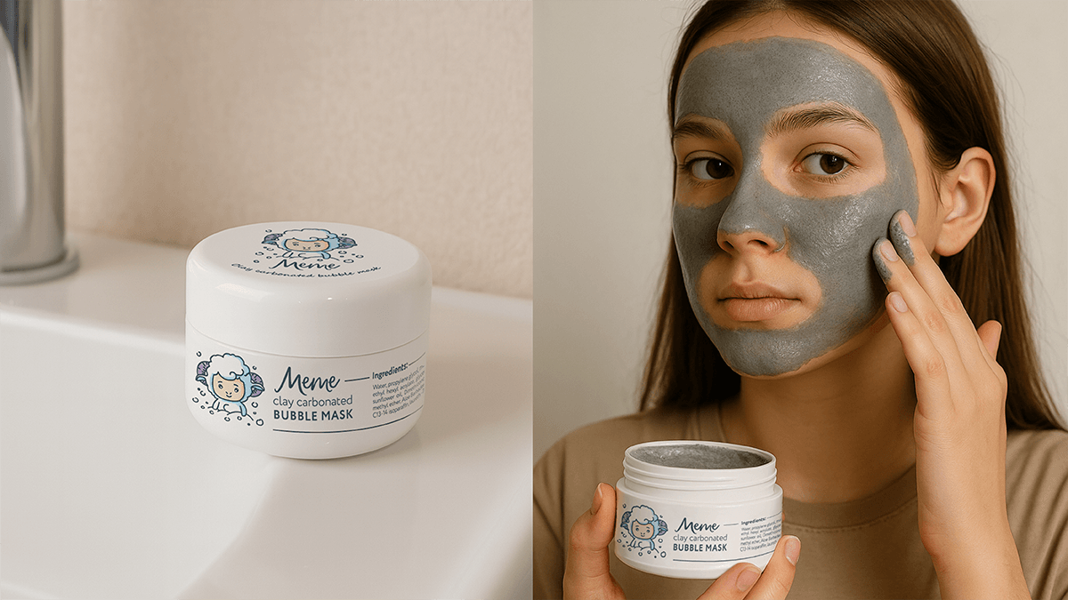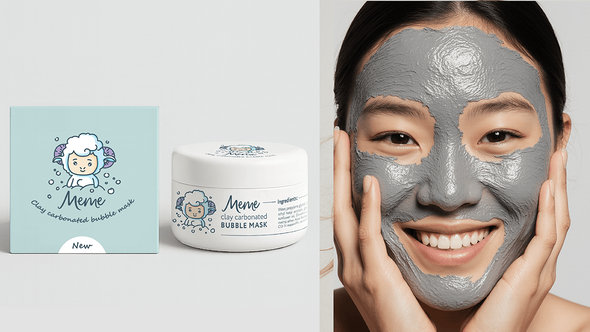 Редизайн лого-персонажа и упаковки для очищающей маски «MeMe».