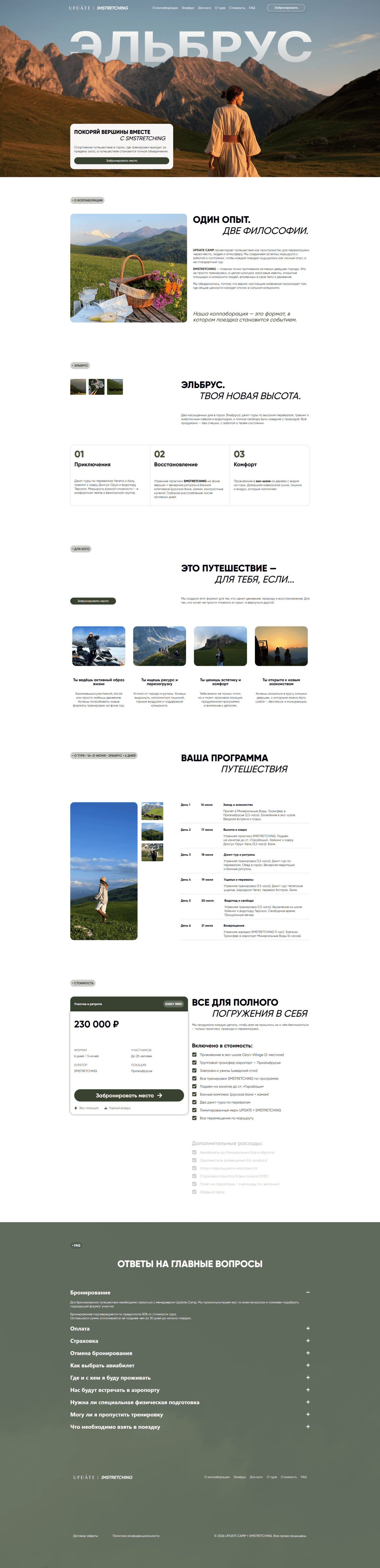 Для SM Stretching был разработан лендинг под отдельный продукт — тур на Эльбрус.