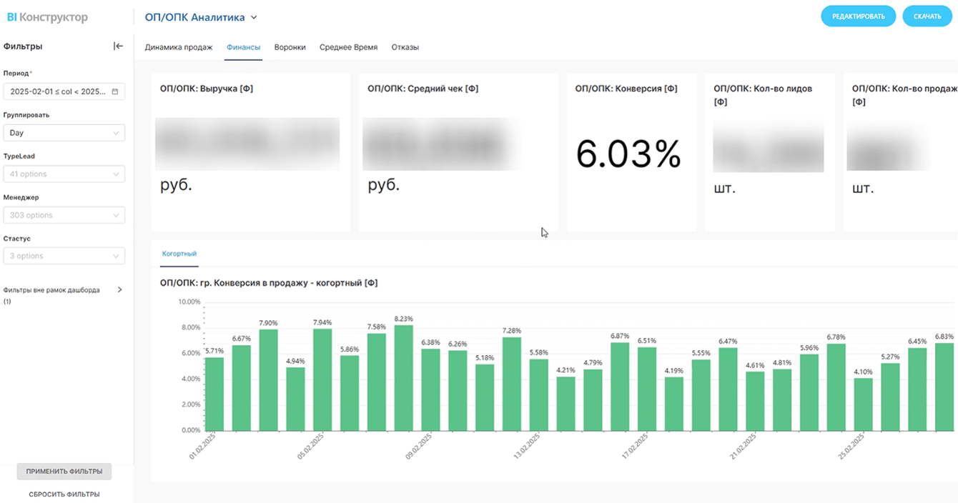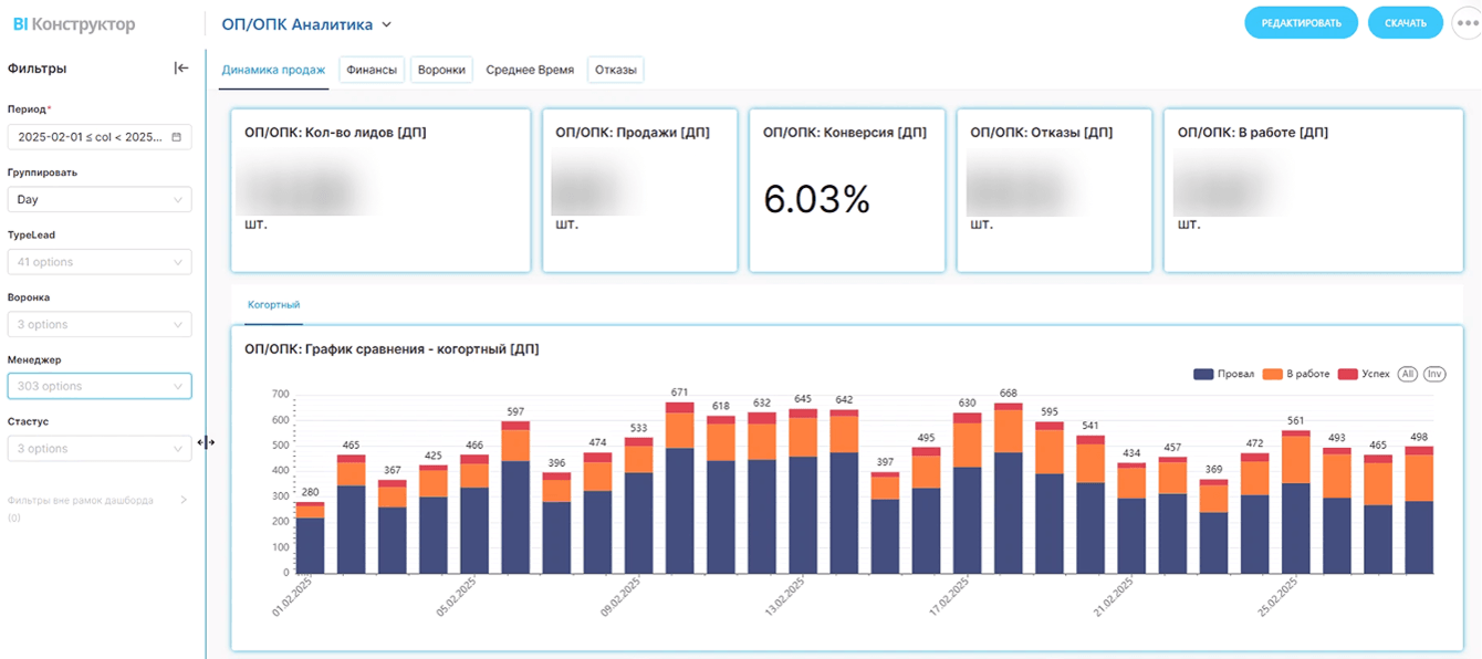 Мы не только разобрались с новым инструментом, но и настроили BI-конструктор под бизнес-процессы клиента, создали интеграцию с CRM, разработали 20+ кастомных дашбордов и обеспечили отображение данных в реальном времени. Также обучили пользователей работе с инструментом.