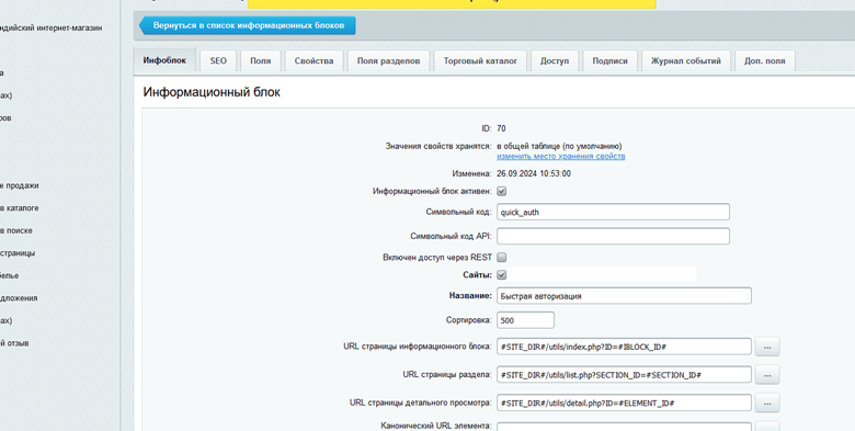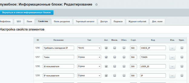 1) В ходе реализации задачи, был добавлен новый служебный инфоблок: