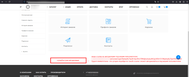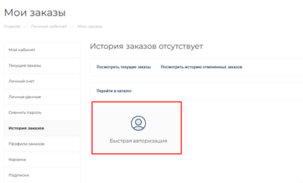 5) Добавлена кнопка Быстрой авторизации раздел личного кабинета Мой кабинет.