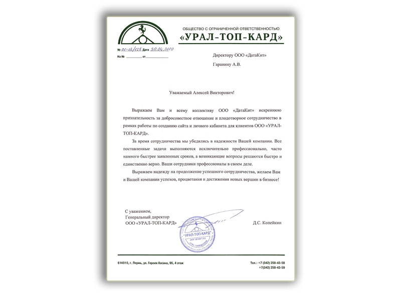 DATAKIT разработала и успешно запустила в работу собственную систему личных кабинетов для компании «УРАЛ-ТОП-КАРД» my.uraltopcard.ru