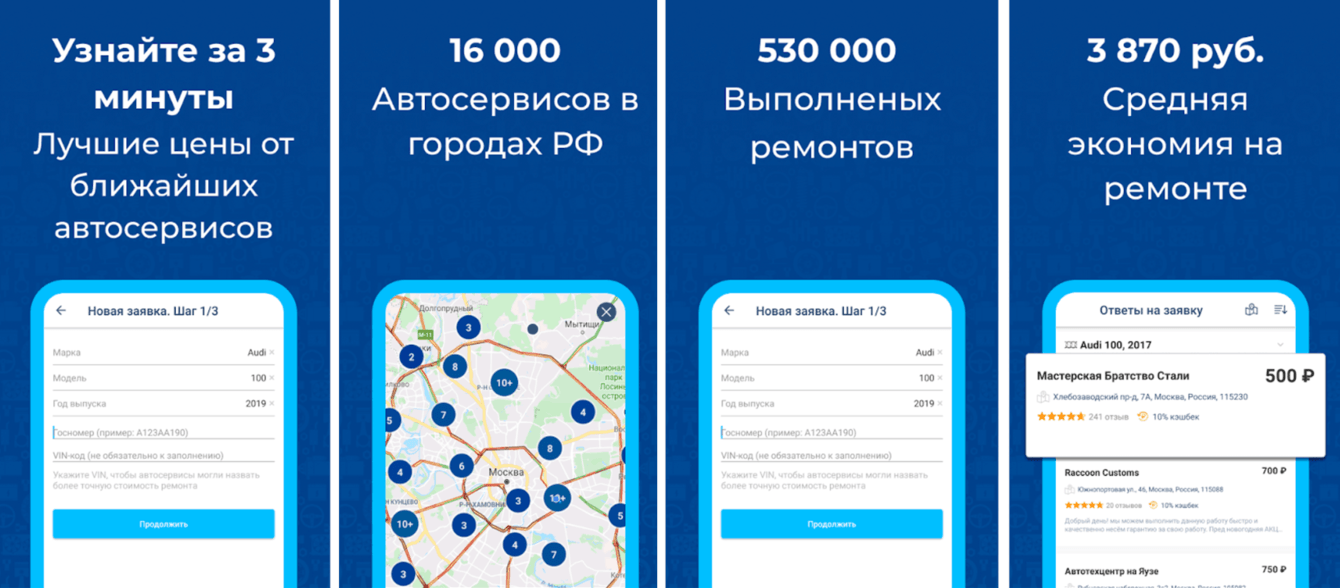 В приложении реализовали механику, при которой зарегистрированные в приложении компании имеют бонус в виде дополнительных клиентов, а клиенты получают возможность оперативно найти автосалон, оказывающий необходимую услугу по доступной цене в радиусе заданного поиска.