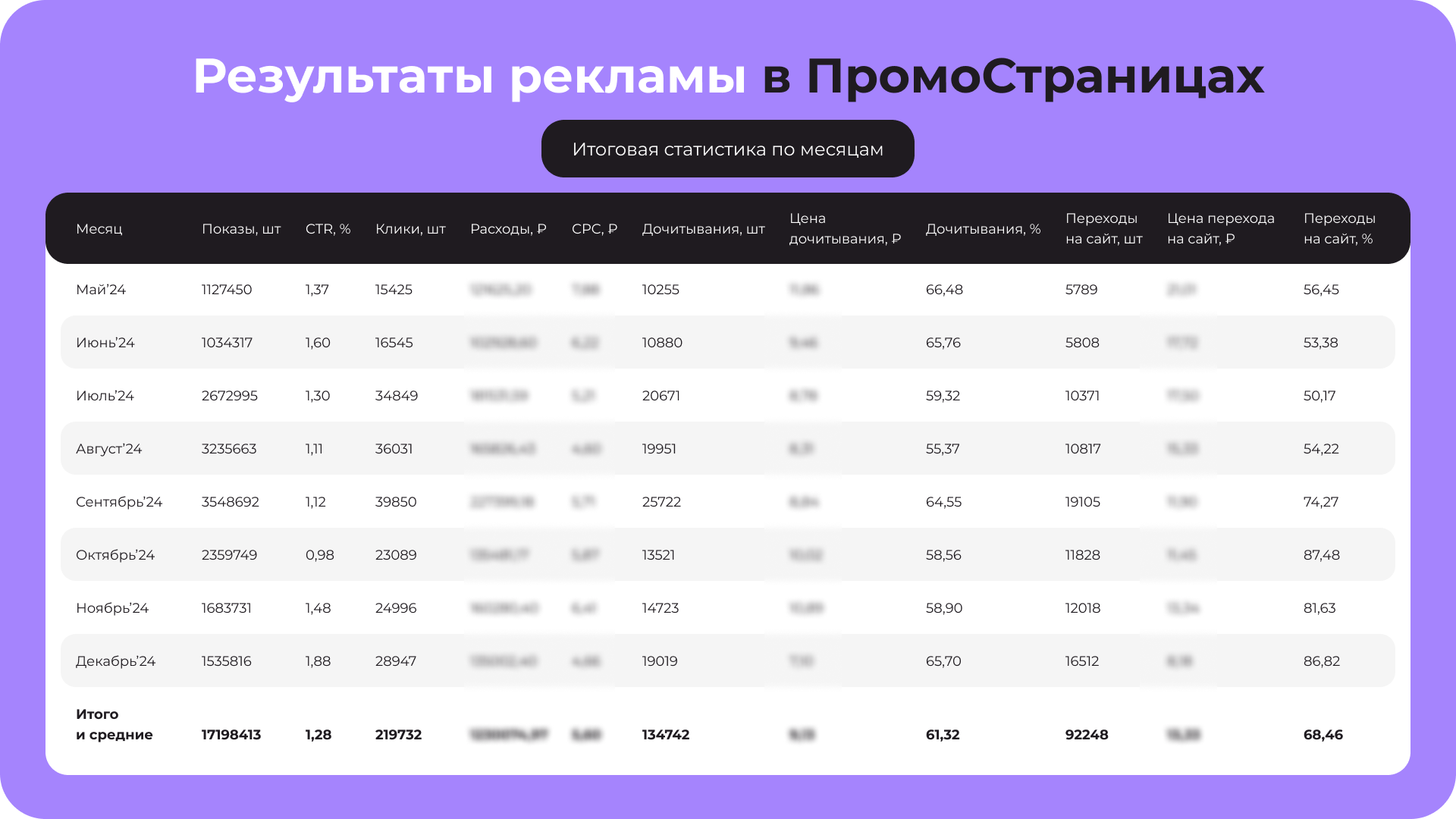 Так как в рамках ПромоСтраниц показатели эффективности не такие, как в других форматах рекламы, встал вопрос, как оценивать эффективность размещения.