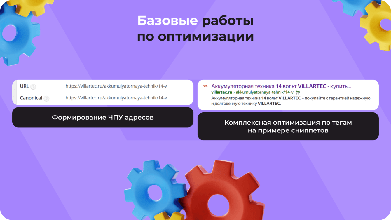 Сперва мы выполнили базовые работы по оптимизации Opencart, особенно в части формирования URL (т.к. по-умолчанию система не формирует корректно URL, и это массовая проблема).