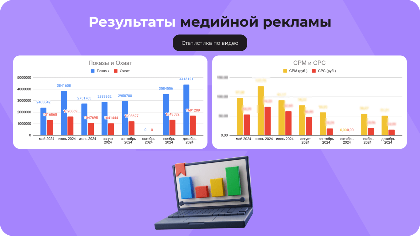 - CPM снизился в 2,6 раза к декабрю, если сравнивать с месяцем запуска.
