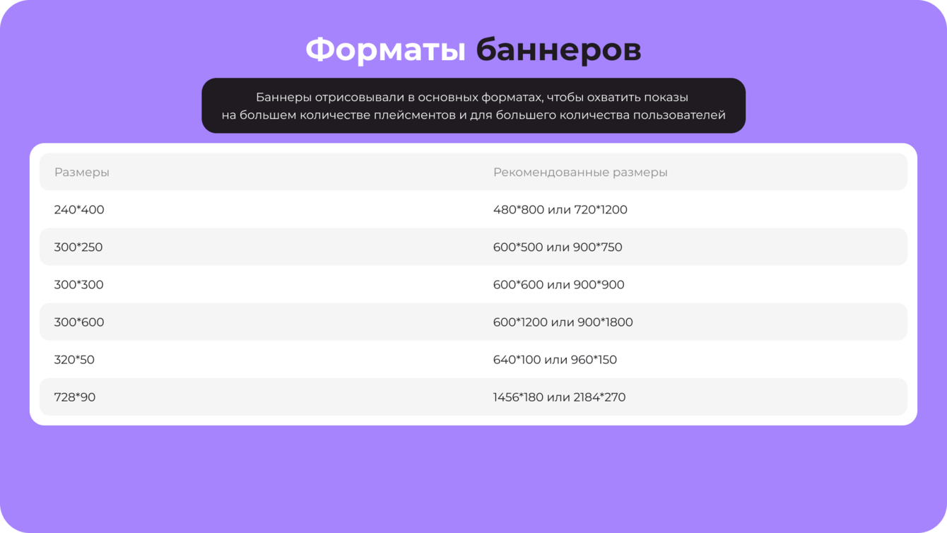 В силу ограниченного бюджета решили не прибегать к использованию премиальных форматов. Остановились на классике: баннерная реклама Яндекса и пропускаемое OLV. Баннеры разрабатывали мы, а видео предоставил заказчик.