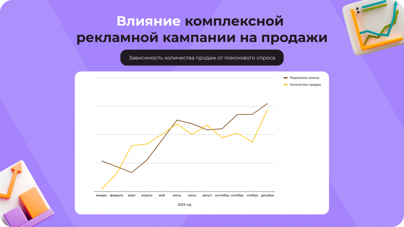 Каждый инструмент дополняет другие, обеспечивая синергетический эффект. Рост трафика и брендовых запросов подтверждает правильность выбранной стратегии. А синхронная зависимость изменений в продажах от изменений в рекламной кампании доказывает, что brandformance-маркетинг тоже «продает» за счет повышения лояльности и узнаваемости.
