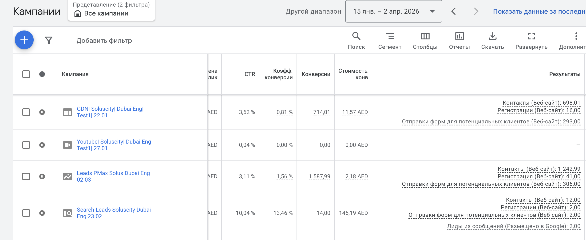 Правда в итоге из-за ситуации в Дубае клиент принял решение приостановить рекламу и вернуться позже.