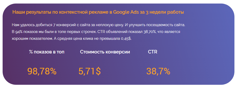 3. Было создано 19 групп объявлений, на каждую группу было добавлено по одному объявлению. Написаны привлекающие внимание, продающие тексты. Выделено уникальное торговое предложение и включено в тексты.