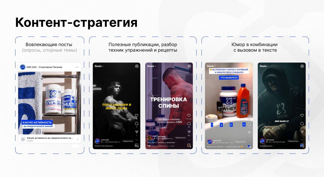 За два года интенсивной работы с социальными сетями USN мы создали активное сообщество, где все увлечены спортом. С появлением новых целей перед SMM возникла задача поддержания этого сообщества, предоставляя подписчикам контент, который они ожидают от эксперта в области спортивного питания и эффективных тренировок.