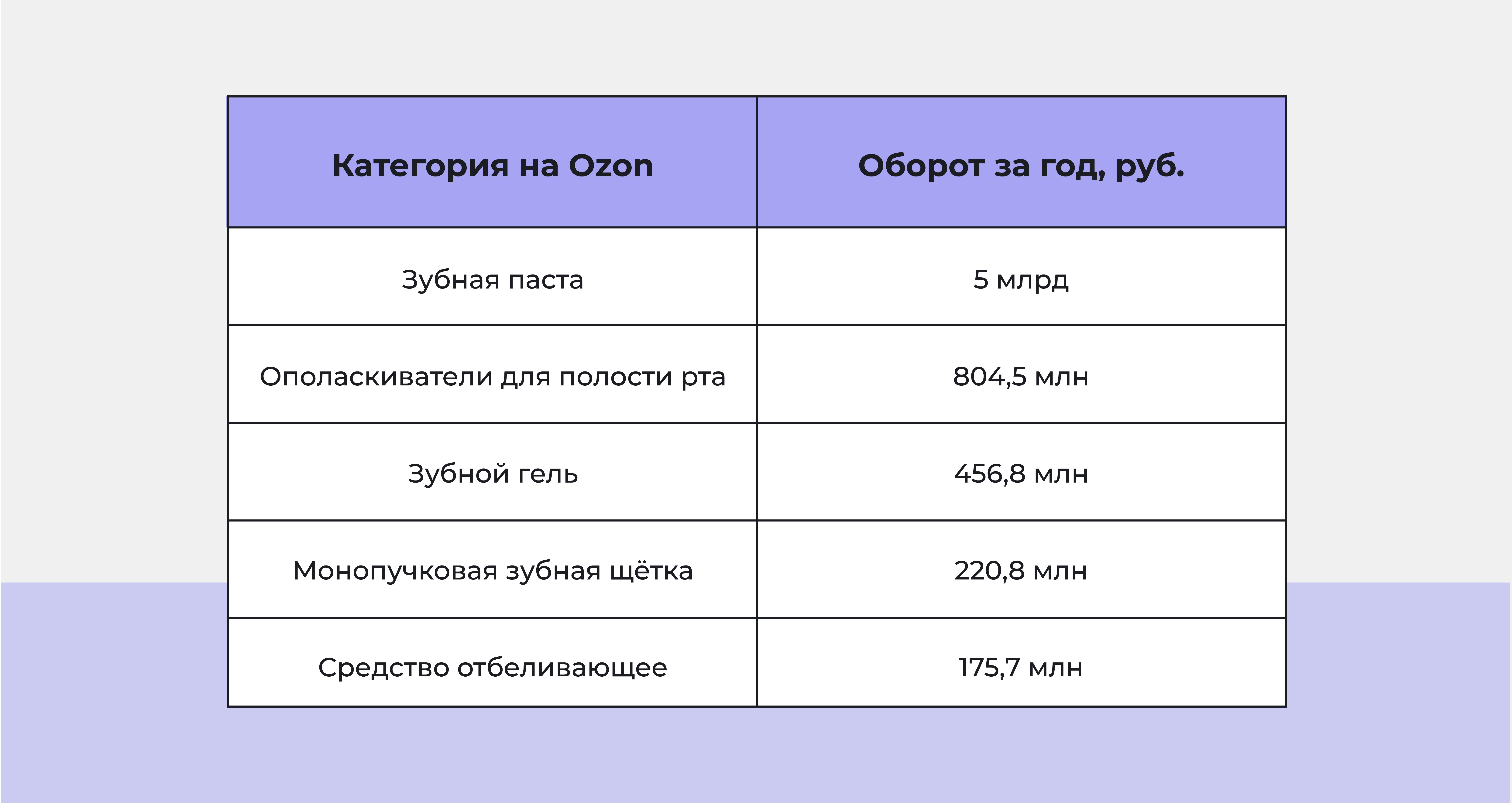 В продуктах по уходу за полостью рта огромная конкуренция. Нам предстояло конкурировать с огромными рекламными бюджетами, инфраструктурой лидеров рынка. Например, только в зубных пастах на Озон > 6 тыс. продавцов. И среди них есть устоявшиеся лидеры: Splat, R.O.C.S, Colgate и другие.