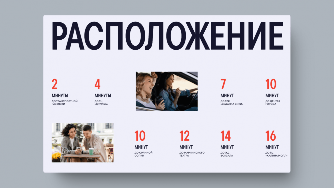 ЖК STARK выделяется на рынке недвижимости Владивостока продуманным проектом благоустройства, расположением в развивающемся районе города и пешей доступностью до основных объектов инфраструктуры. Это нам предстояло отобразить на сайте квартала. Мы добавили карты и информацию о расположении квартала, указали расстояния до ключевых объектов инфраструктуры и отразили реализацию концепции 15-минутного города.