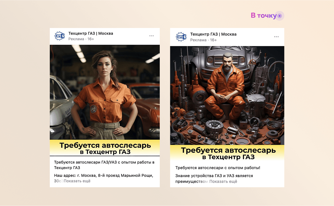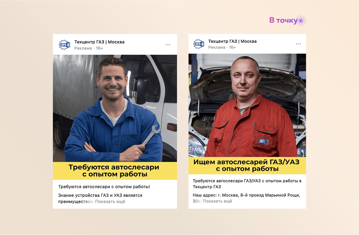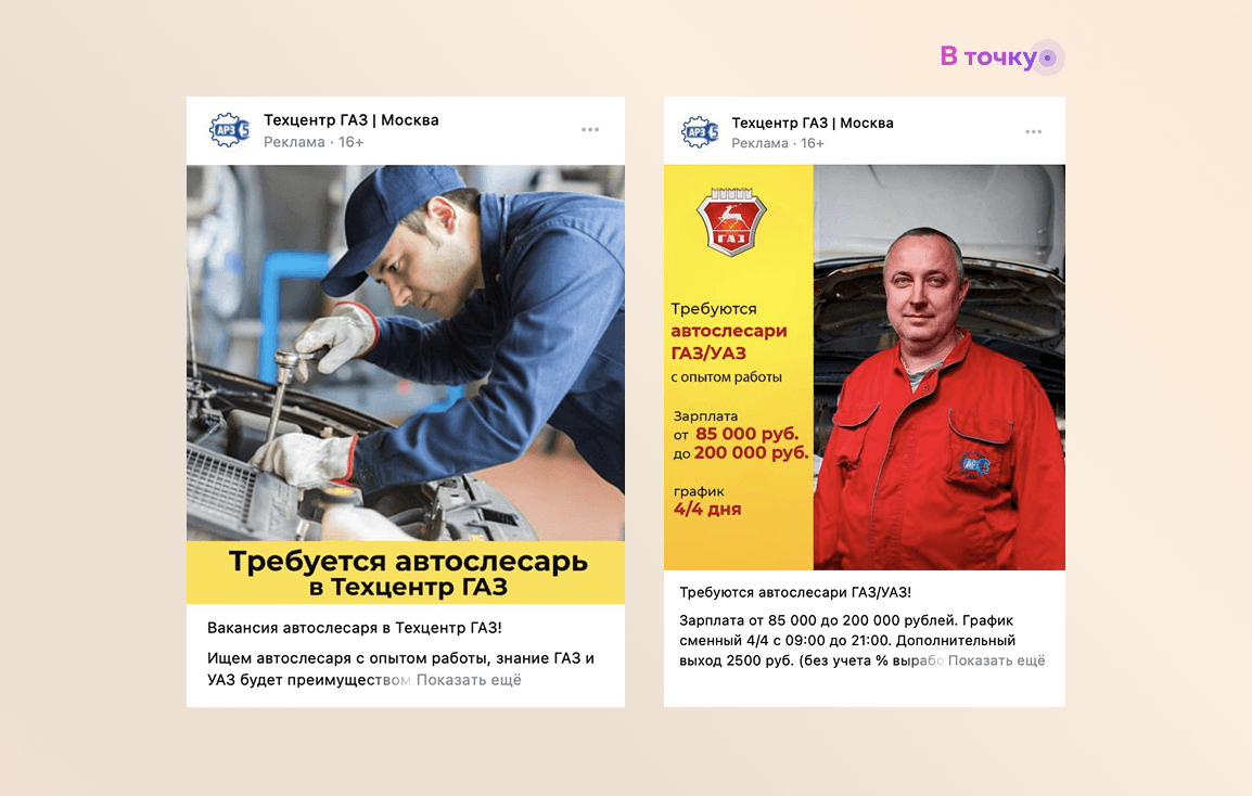 Настроили супергео на тех, кто регулярно посещает автосервисы конкурентов. Эта стратегия позволила нам «перехватить» потенциальных кандидатов, уже заинтересованных в работе в автосервисе, и предложить им более выгодные условия.