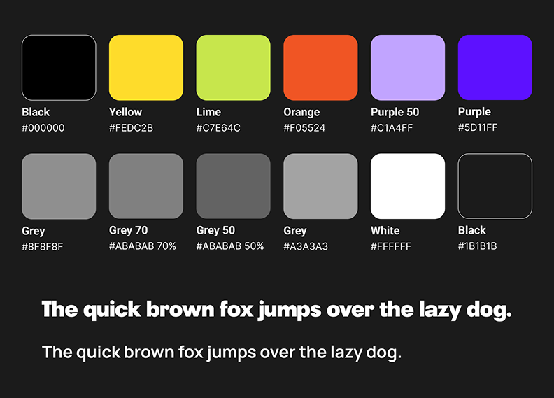 В палитре Buzz использовали яркие цвета. В качестве основных взяли лаймовый, желтый и красный, для акцентов выбрали оттенки фиолетового, белый и оранжевый. Эти цвета эффектно смотрятся в темной теме и вызывают ассоциации с вечеринками: