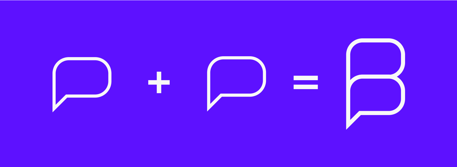 В начертании лого заложена стилизованная иллюстрация чата: логотип словно складывается из двух иконок чата, образуя букву B: