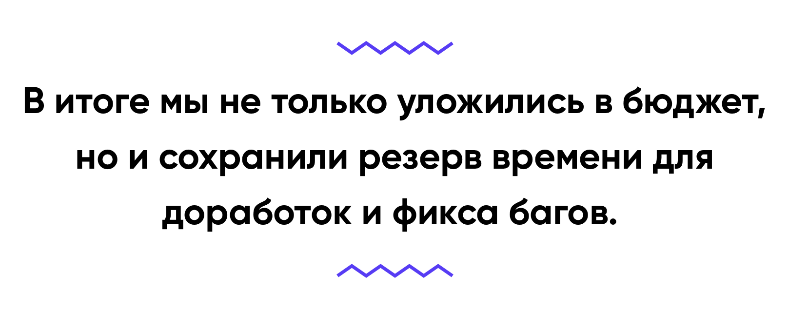Заказчик вложил в проект собственные деньги, и бюджет проекта был ограничен — частая история для стартапов. В таких случаях мы предлагаем отложить второстепенные фичи в бэклог. Но здесь с самого начала мы работали над MVP — сокращать было уже нечего.