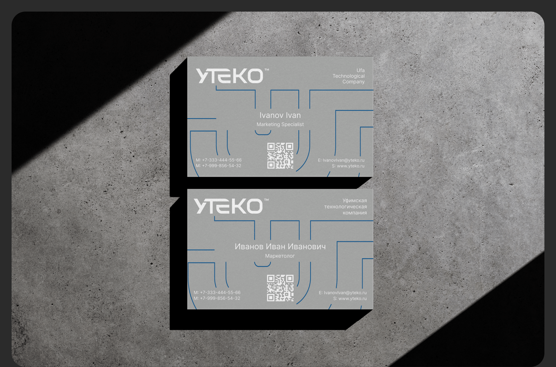 Компания «УТЕКО» предоставляет комплексные услуги в области производства и поставок нефтегазового оборудования. Основные направления деятельности включают проектирование и производство наземного технологического оборудования. Наша задача заключалась в обновлении визитных карточек.