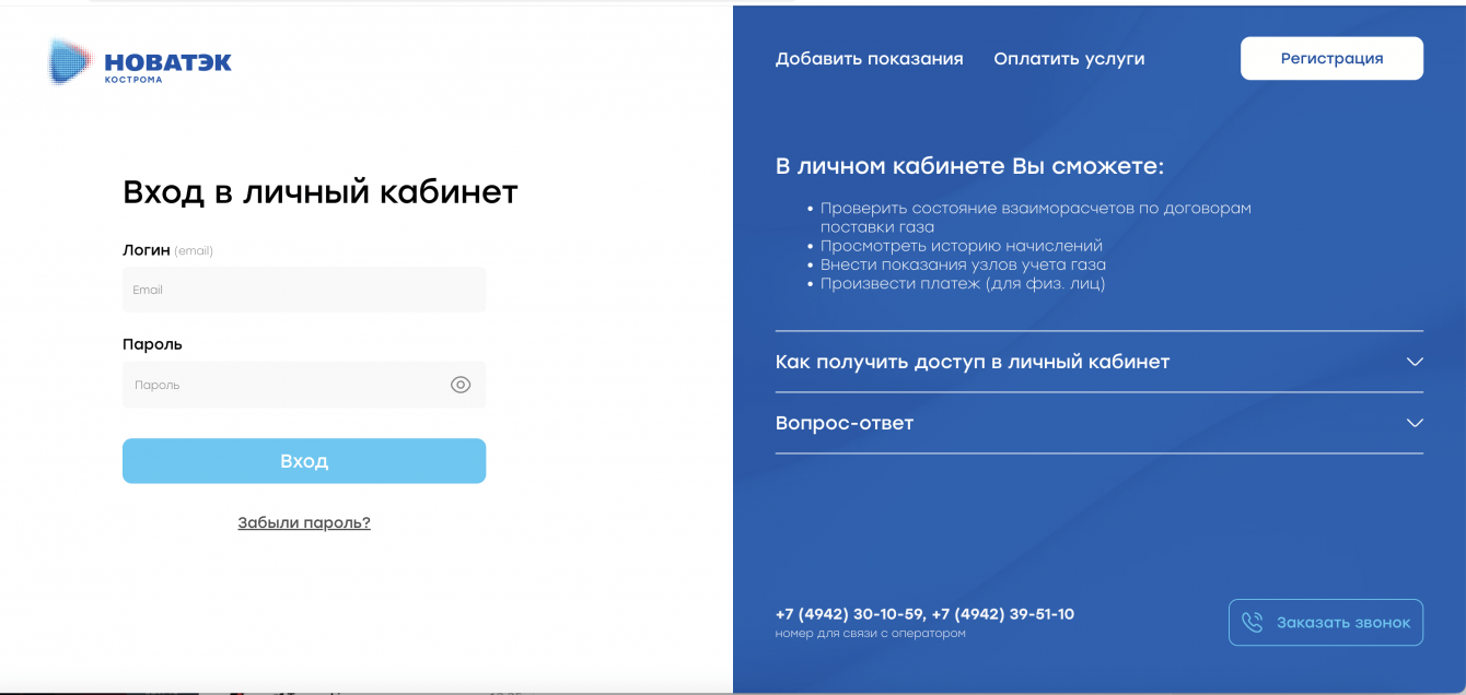 Основная проблема заказчика заключалась в устаревшем личном кабинете для абонентов, где клиенты подавали показания по газовым счетчикам и оплачивали счета.