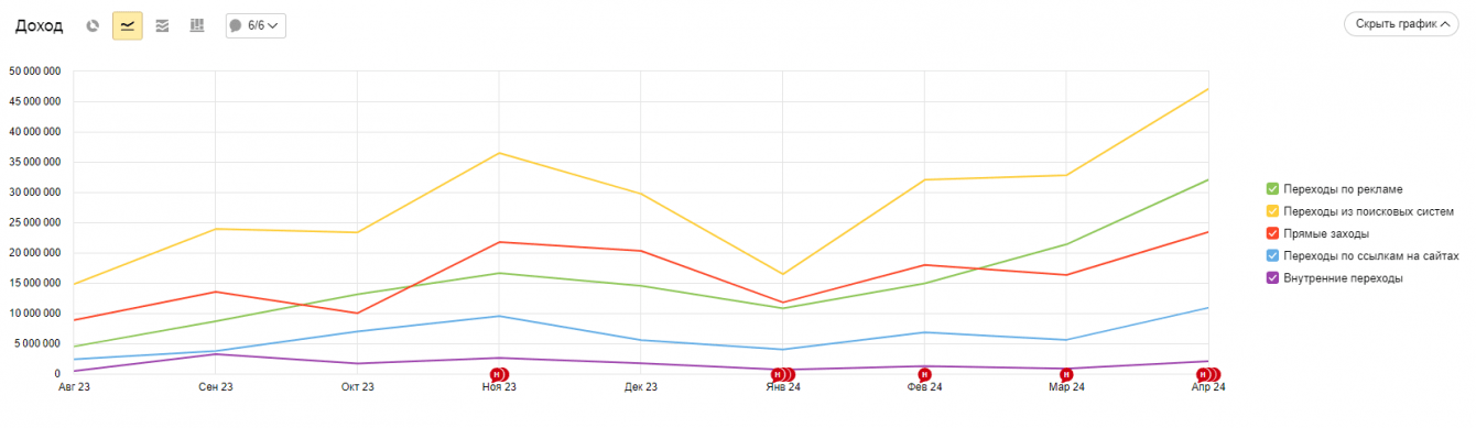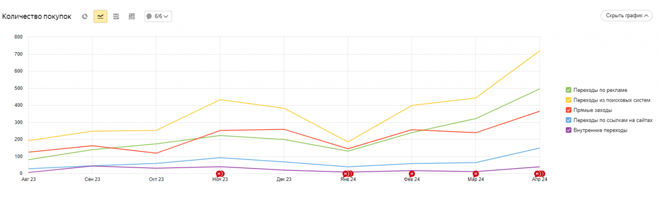 - Необходимо было настроить всю аналитику, в том числе электронную коммерцию, данные о выкупах, среднем чеке, проброс оффлайн конверсий