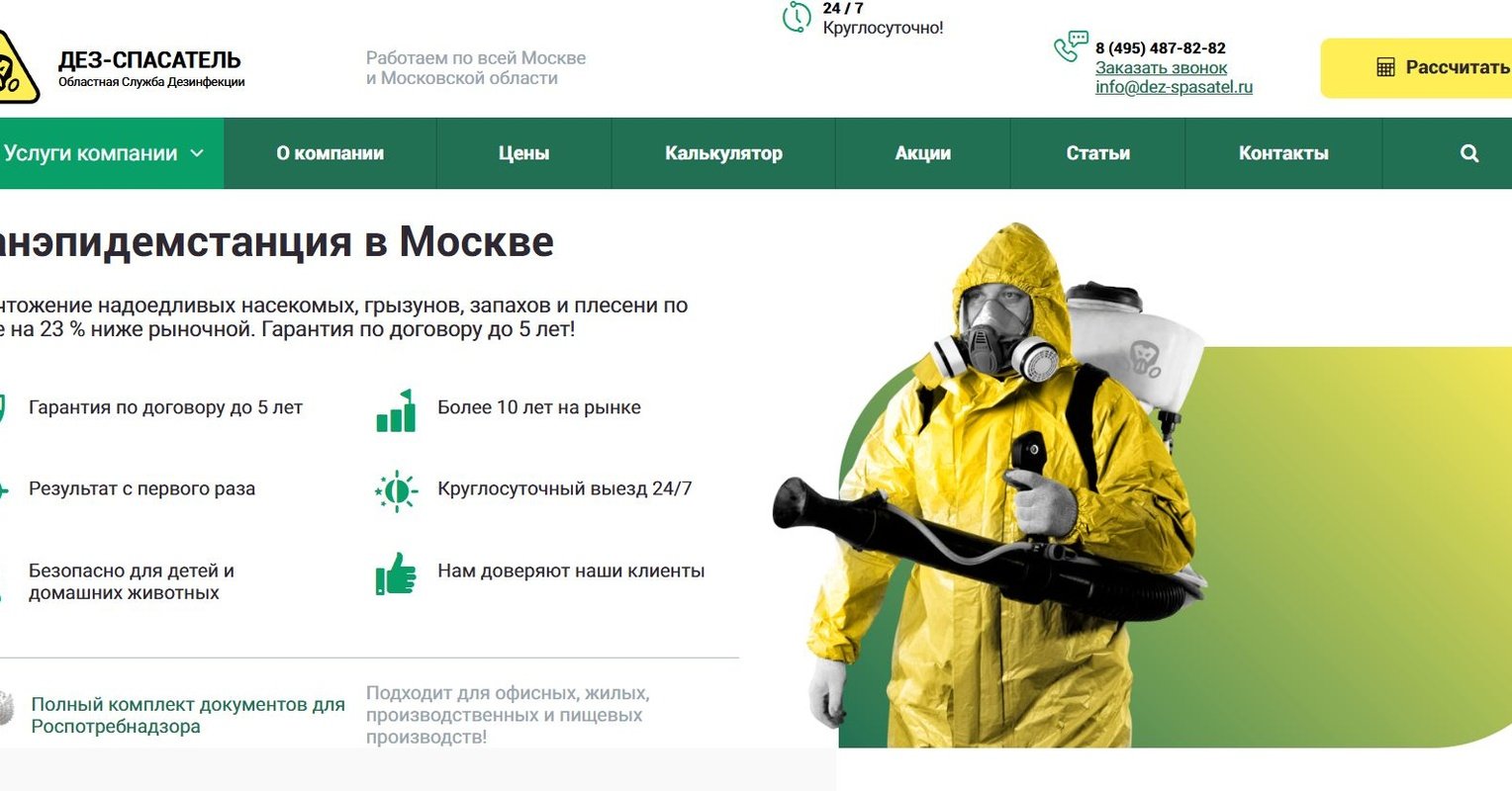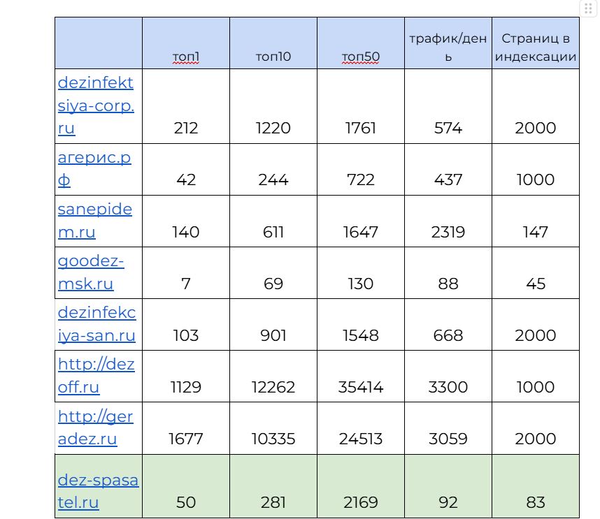 С самого начала мы поняли что страницы с услугами не релевантны запросам на которые они ведут. С чем это связано? Связано это был с двумя вещами. 1) Сдвоенное меню, мобильное и десктопное 2) Слово "фумигация" тянулось абсолютно во все разделы из меню, поэтому вне зависимости от страницы, всё было релевантно слову "фумигация" и поисковик никак не мог нас найти по нужным ключевым запросам.