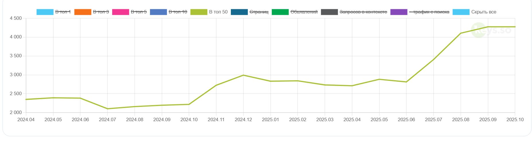 В данном проекте нам важно было усилить именно коммерческий трафик, потому как заходы на сайт были, но заходили в основном на статьи. Конверсия с информационного трафика чрезвычайно маленькая, а бизнес нашего клиента нуждался именно в коммерции