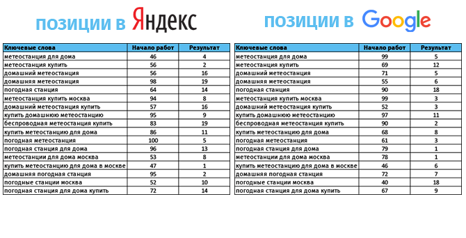 - Продвижение ключевых слов по позициям в поисковых системах Yandex и Google
