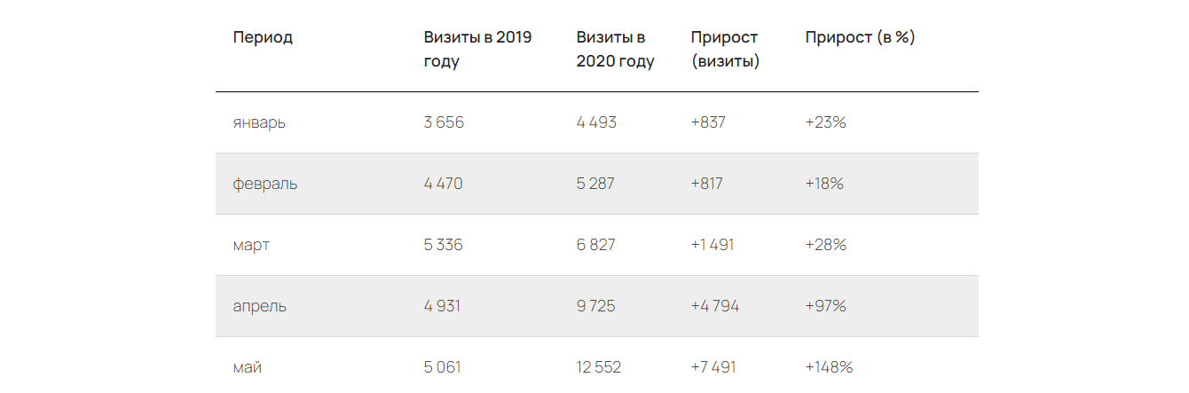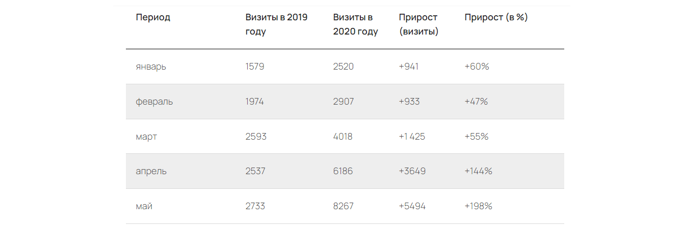 - Достигнут прирост ежемесячных визитов с момента запуска на 179% (на 8 059 визитов в месяц).