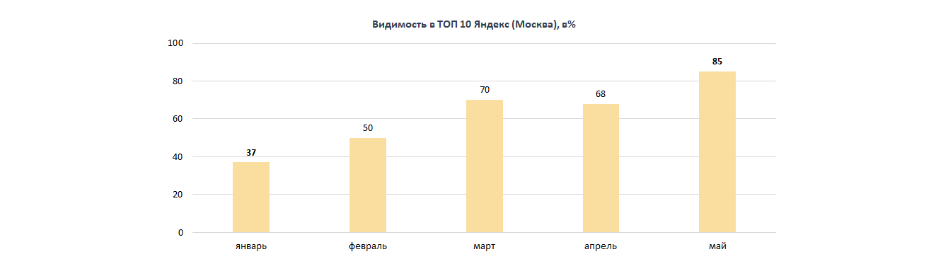 4. Рост видимости с 37% до 85% за 4 месяца продвижения (Яндекс Москва):