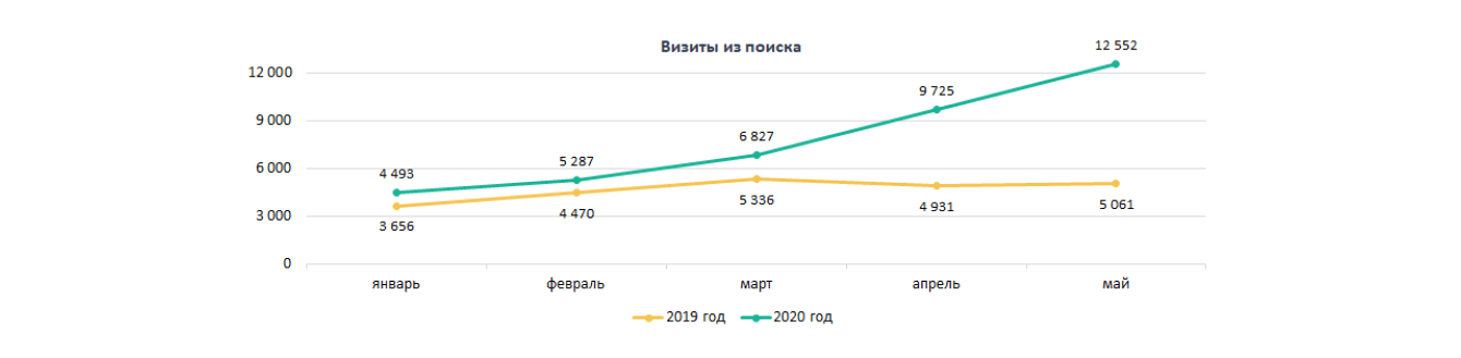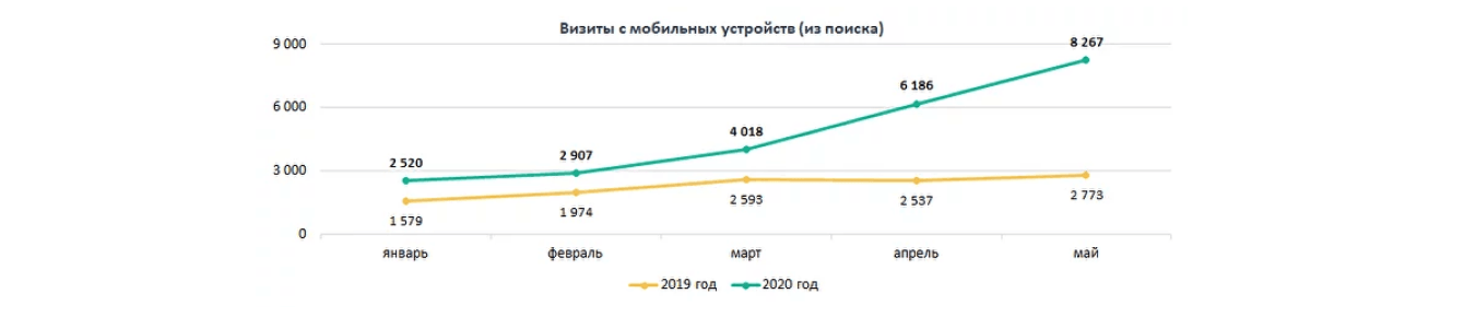 - роста поискового трафика с мобильных устройств на 11 501 визит (относительно 2019 года);