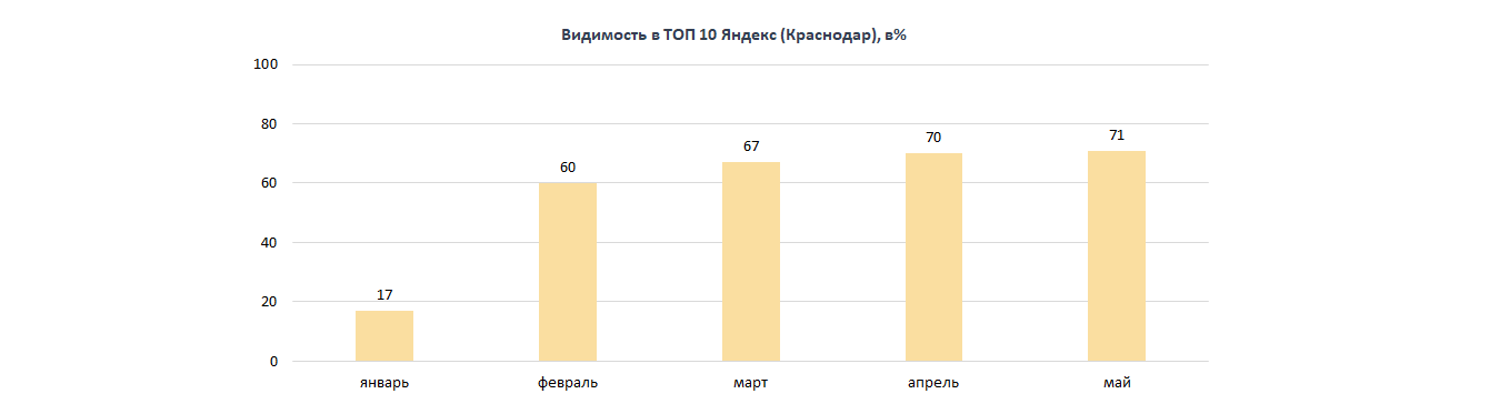 3. Рост видимости с 17% до 71% за 4 месяца продвижения (Яндекс Краснодар):