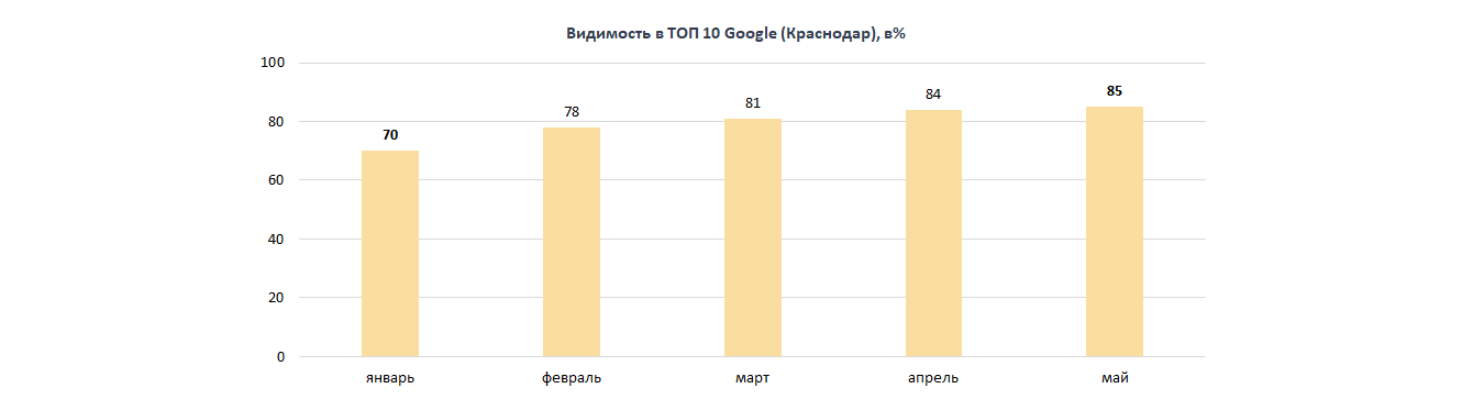 5. Рост видимости с 70% до 85% за 4 месяца продвижения (Google Краснодар):