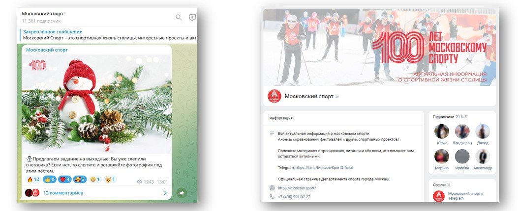С точки зрения контента было важно интегрировать те новости, которые ранее публиковались на странице Департамента, в план «Московского спорта». Для этого использовались одновременно обе площадки – и ВКонтакте, и Телеграм. В зависимости от темы и аудитории, на которую направлено содержание новости или тема события, подбирался нужный канал или же адаптировался контент под оба канала – ВКонтакте и Телеграм.