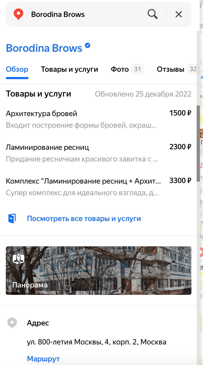 Мы создали и оформили точку на Яндекс.Картах, к которой также подключили возможность онлайн-записи, благодаря чему процесс поиска мастера для целевой аудитории Анны заметно упростился.