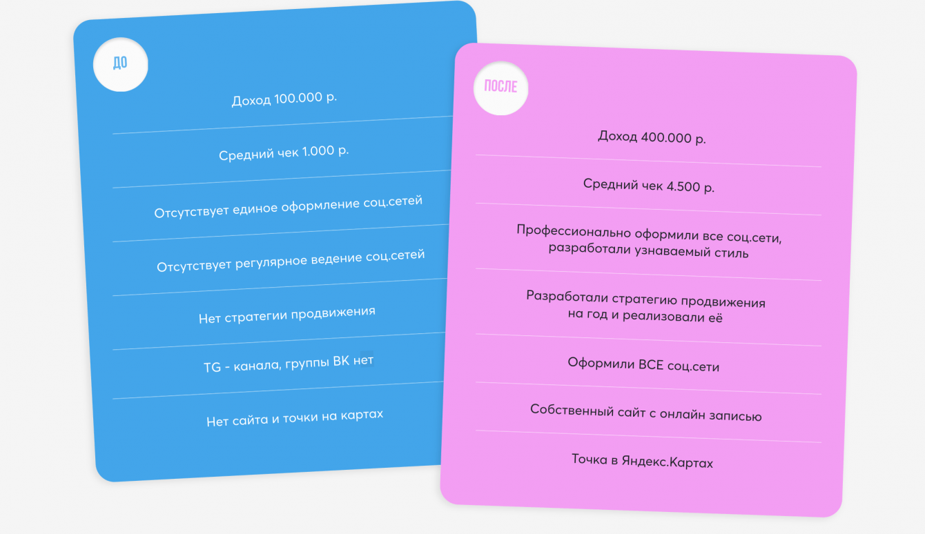 Мы собрали Анне сайт по всем её пожеланиям, а также техническим требованиям. Создали и настроили кабинет в сервисе онлайн-записи YClients, который интегрировали в сайт и позднее в Яндекс.Карты.