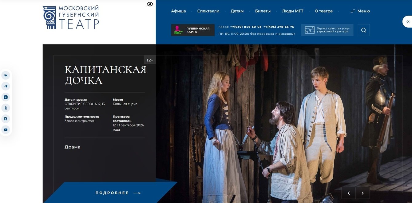 Московский Губернский театр начал свое существование в 2013 году. Художественный руководитель – народный артист РФ Сергей Витальевич Безруков.