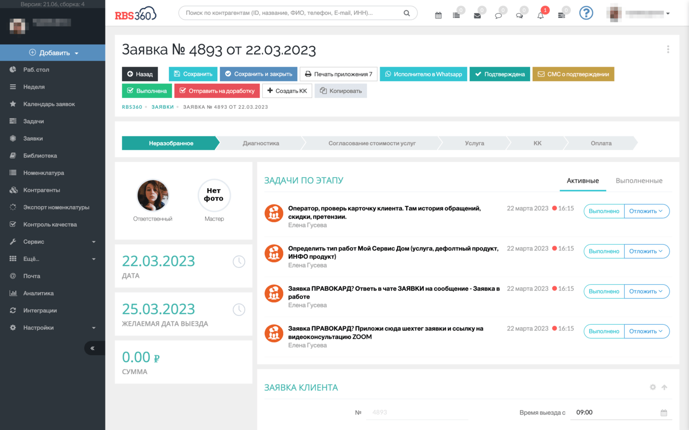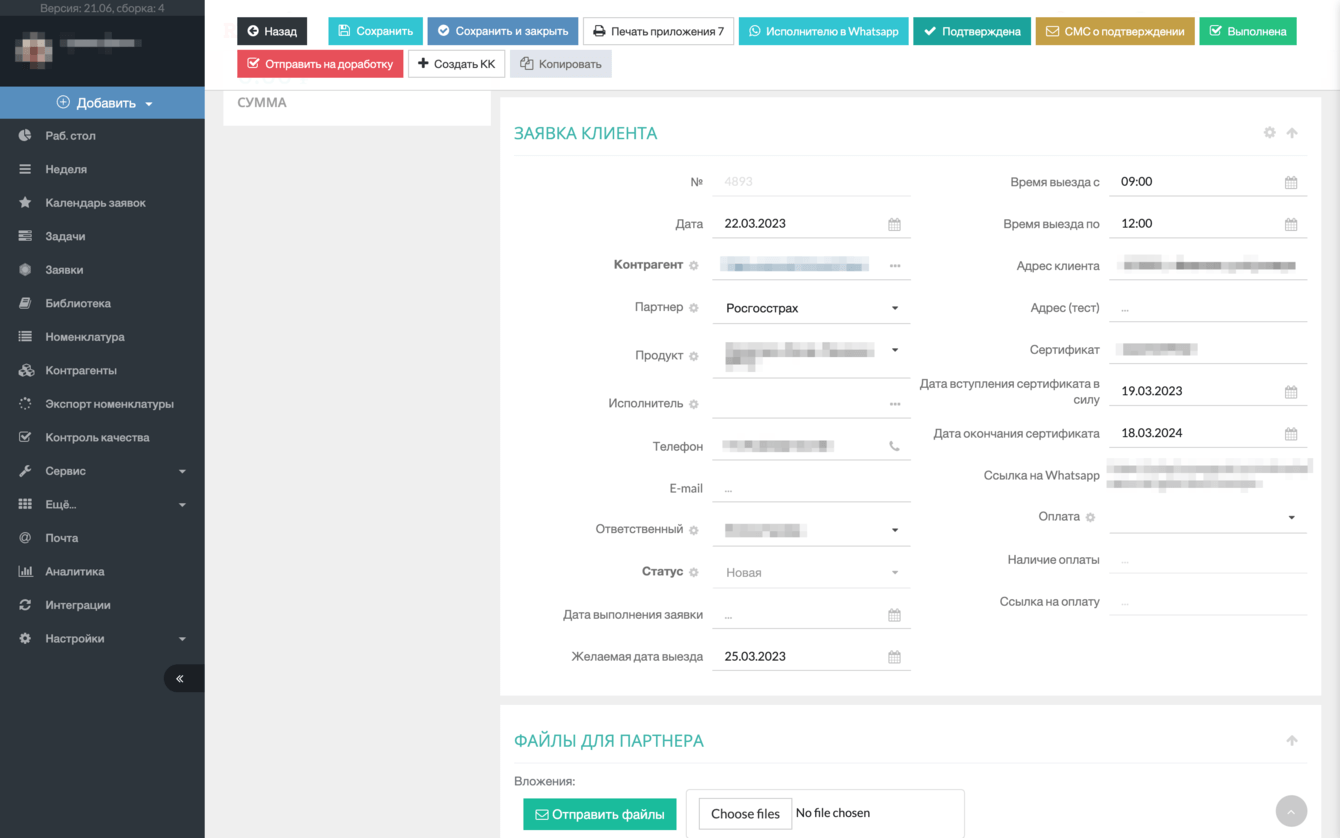 Взаимодействие с Мастером реализовали как веб-страница с уникальной ссылкой. Ссылка из CRM автоматически отправляется Мастеру в Whatsapp через сервис WAZZUP24.