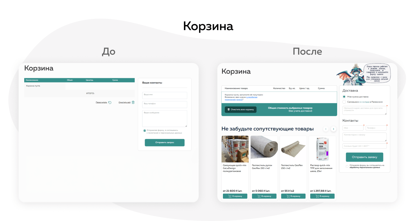 ● Добавили понятное объяснение механики: корзина работает как список товаров, по которому менеджер готовит расчет.