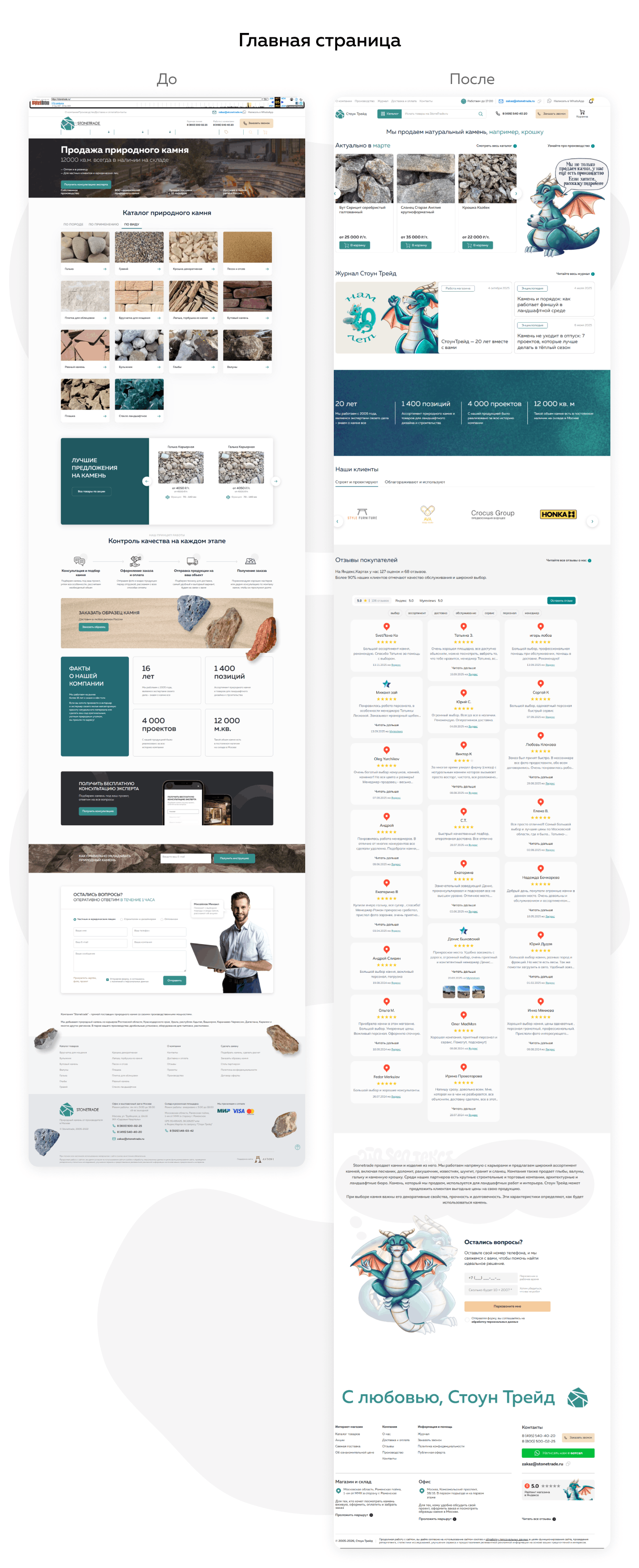 Старая главная была стандартным набором блоков без коммерческой и навигационной логики. Новая структура решает конкретные задачи: