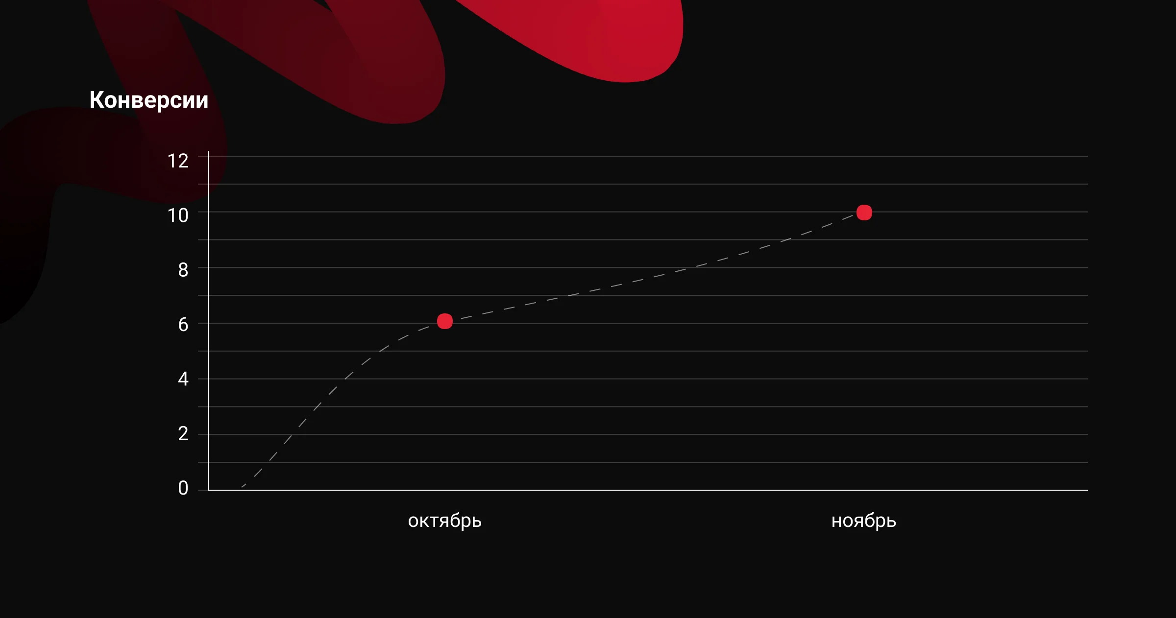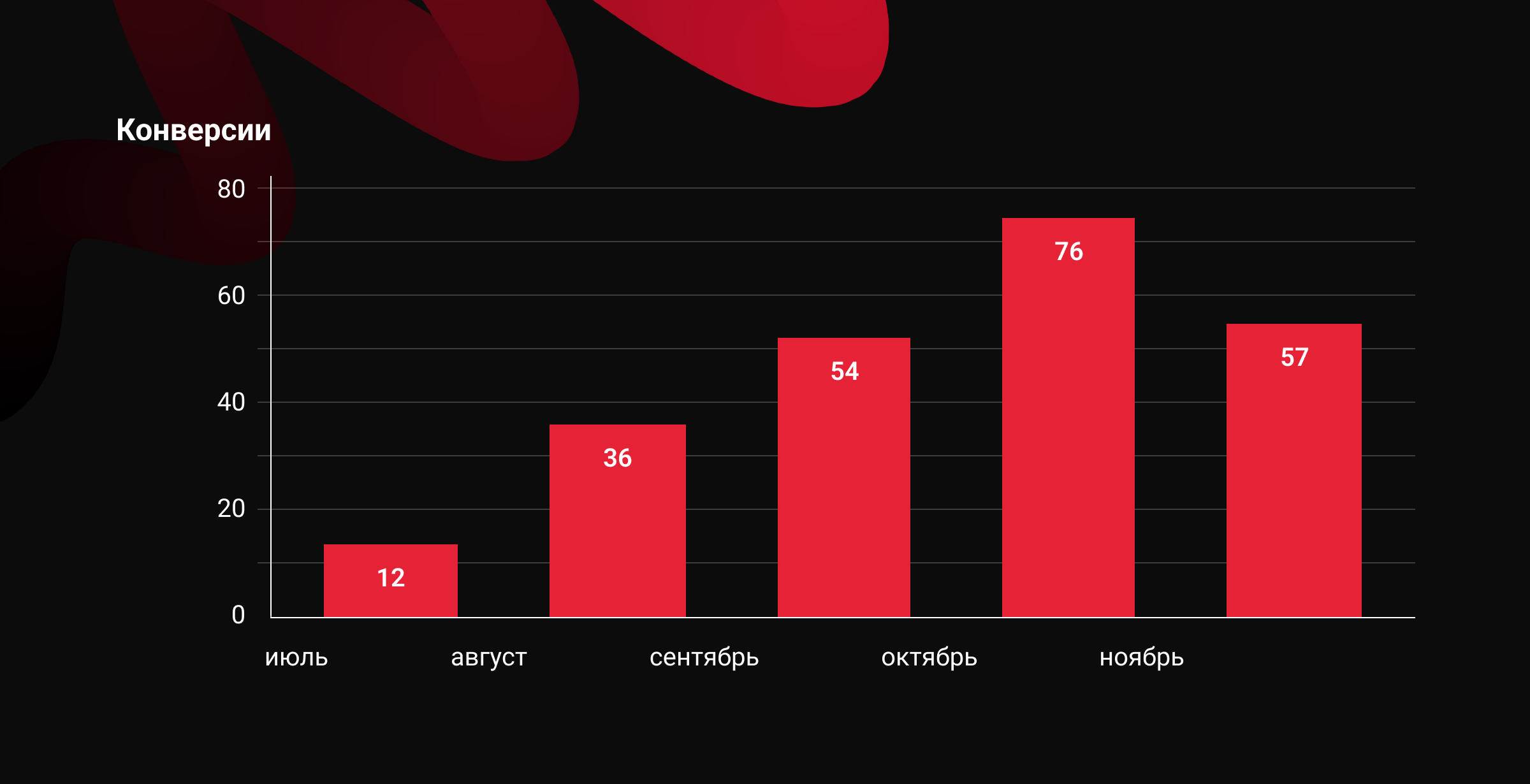 Динамика роста конверсий за время работы с Zum Punkt. Небольшое снижение в ноябре связано с перерывом в рекламе по инициативе клиента: