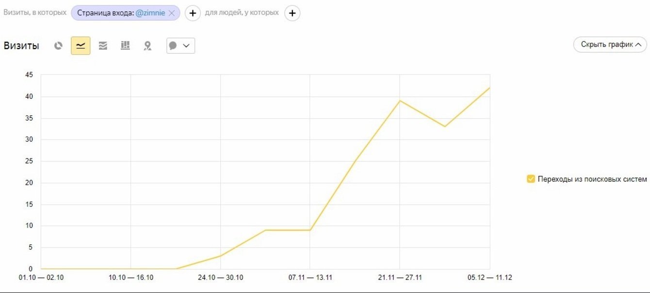 В результате с ноября уже появилась посещаемость страниц зимних экскурсий, что позволяет увеличить отдачу ресурса в несезон: