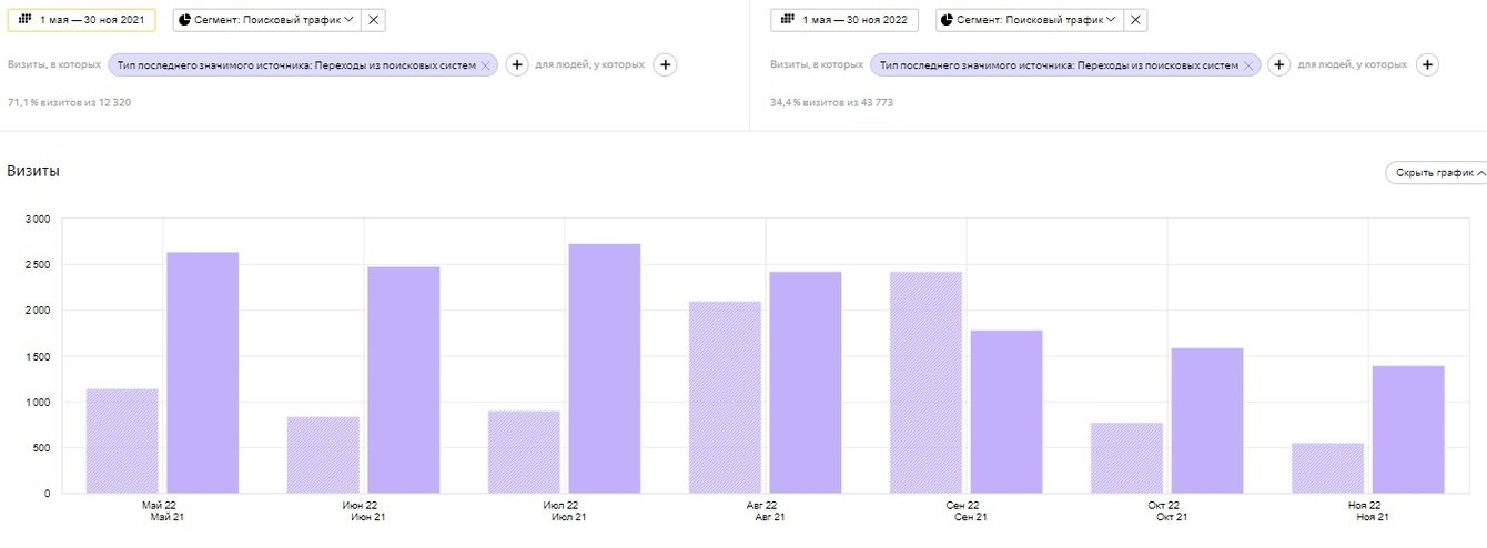 Менее чем за год количество трафика из поисковых систем увеличилось: