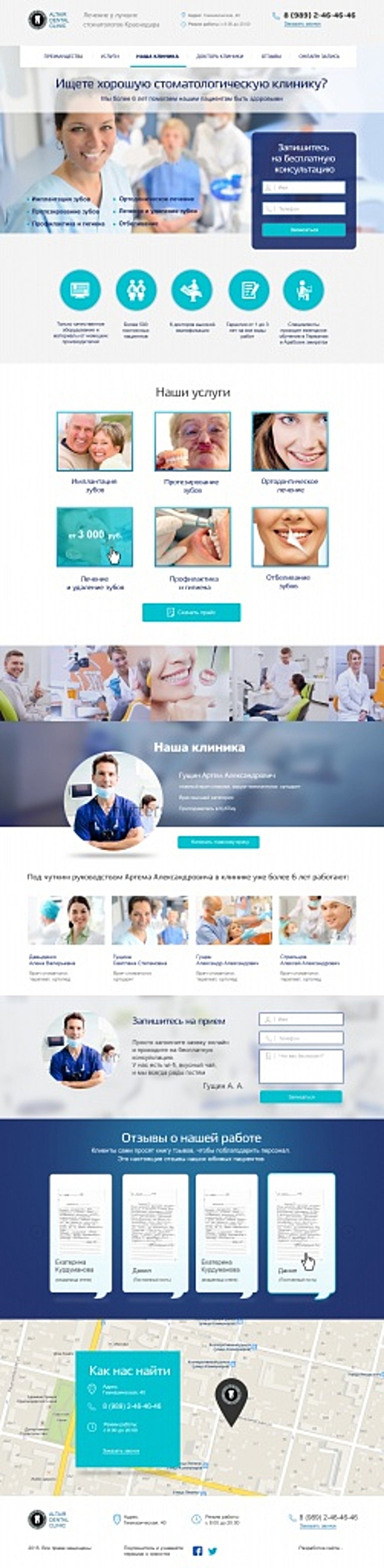 1. Разработана посадочная страница для основных услуг клиники с целью обработки заявок из платной рекламы;