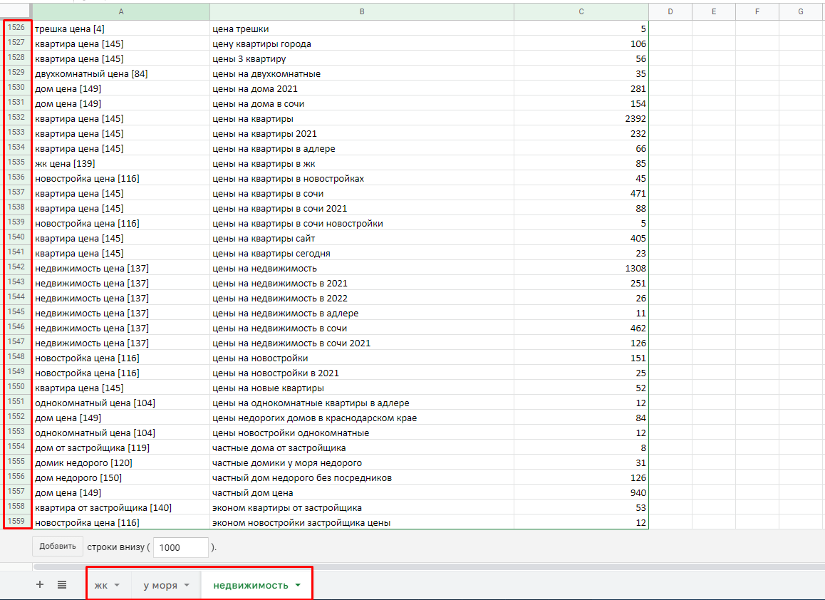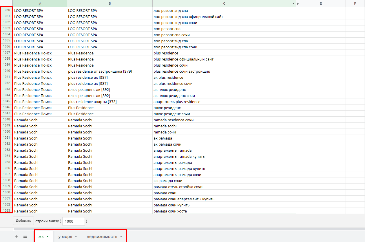 3. Тщательно отминусовали все ключи, которые нам не подходят/не целевые/не отражают сути нашего УТП и т.д.