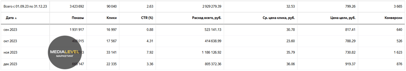 • Протестировали различные сегменты аудиторий: широкие аудитории по аффинити индексу, сегменты интересов, связанные с услугой клиента, интересы, связанные с сайтами конкурентов.